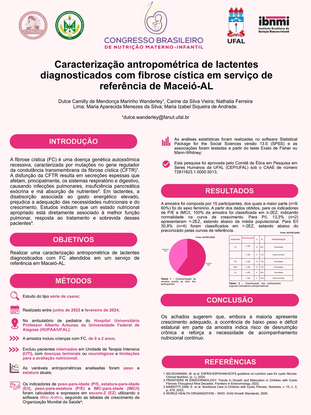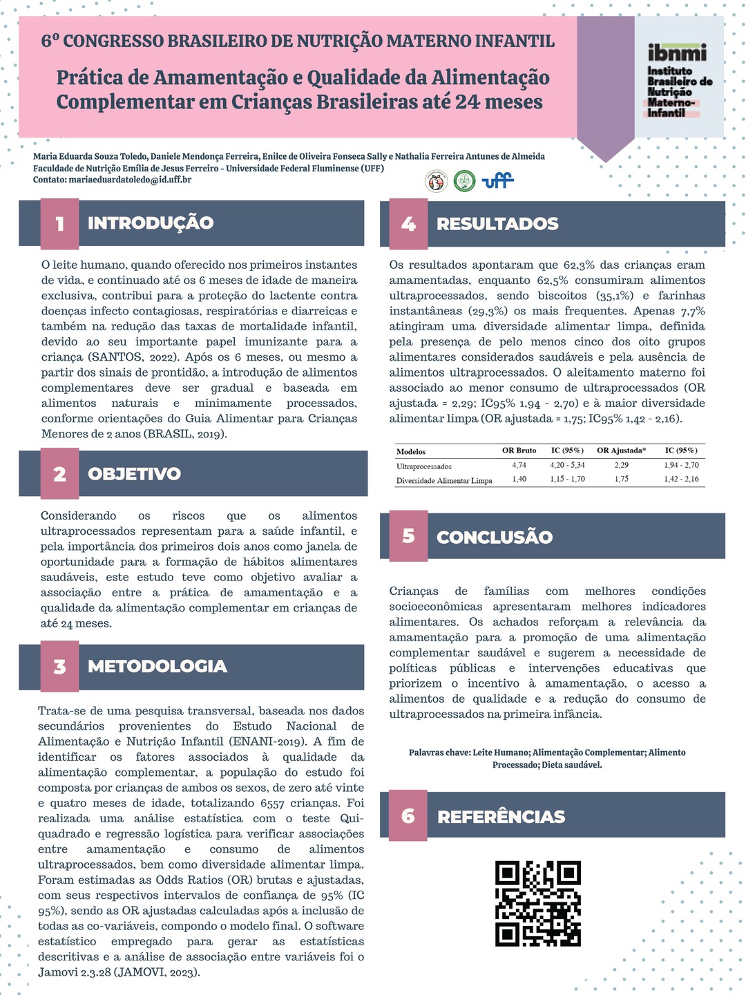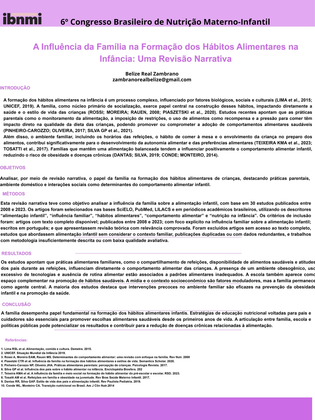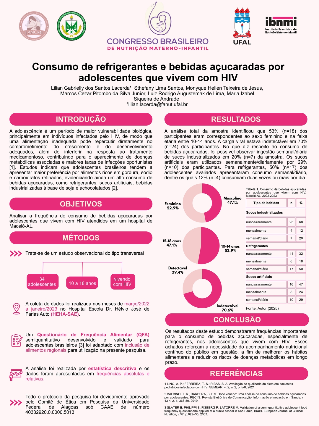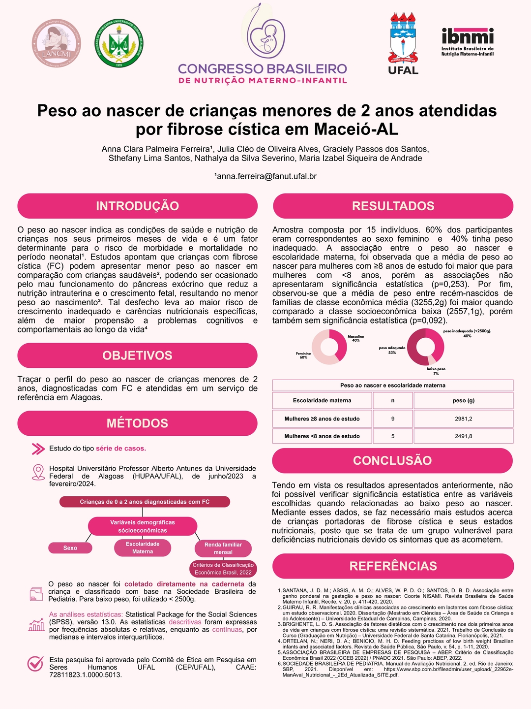Todos os pôsteres apresentados e aprovados compõem os Anais do 6º Congresso Brasileiro de Nutrição Materno-Infantil, reforçando a relevância da pesquisa e o papel transformador dos profissionais que constroem conhecimento científico na área.