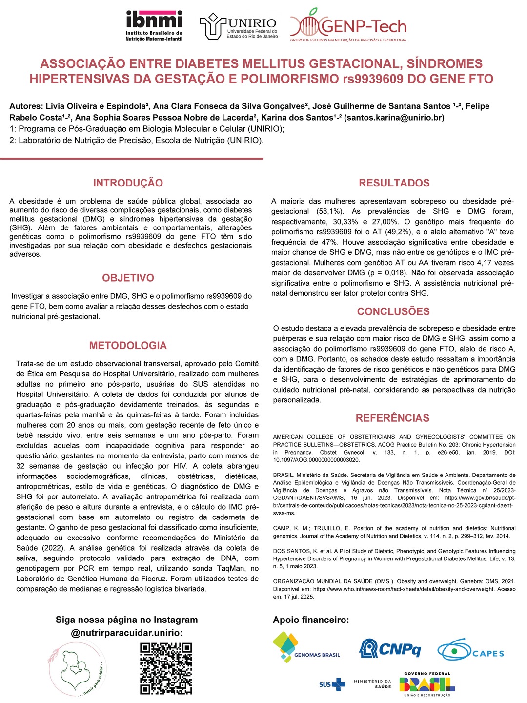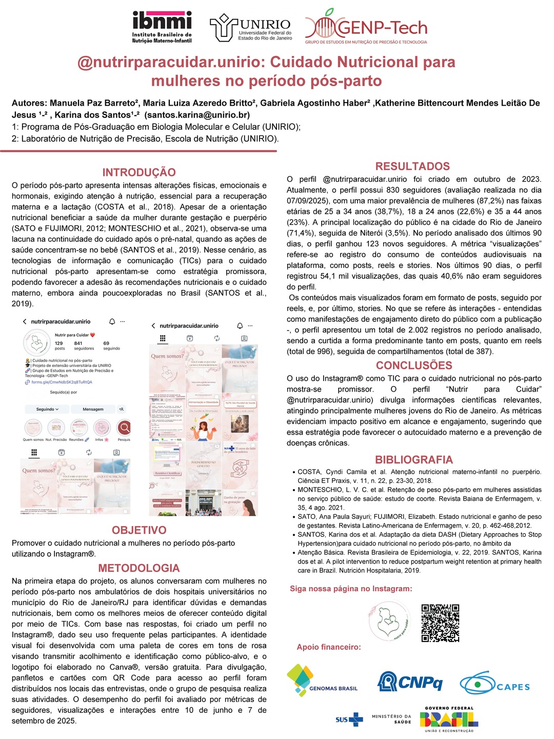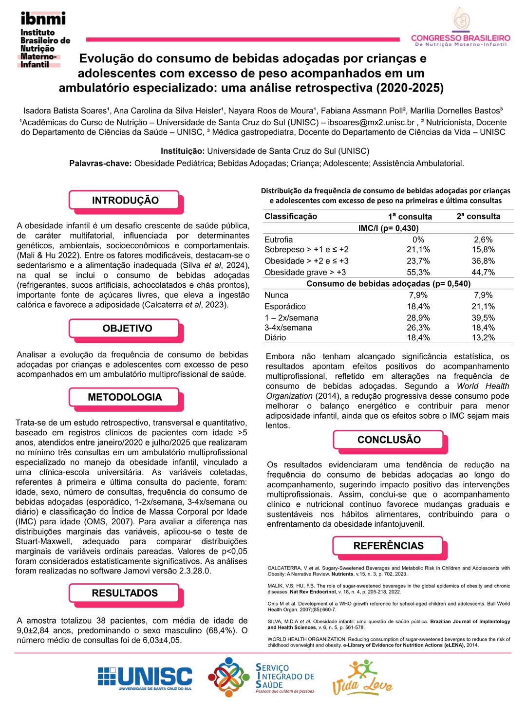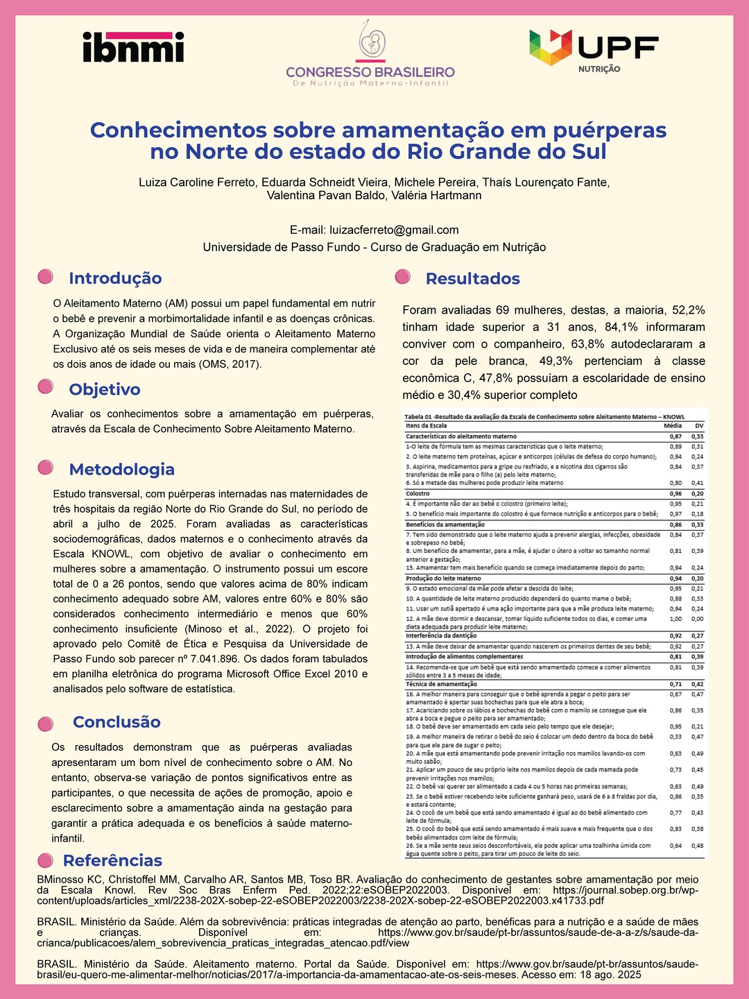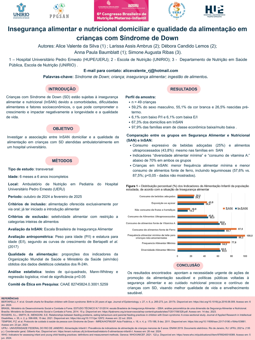 Todos os pôsteres apresentados e aprovados compõem os Anais do 6º Congresso Brasileiro de Nutrição Materno-Infantil, reforçando a relevância da pesquisa e o papel transformador dos profissionais que constroem conhecimento científico na área.
