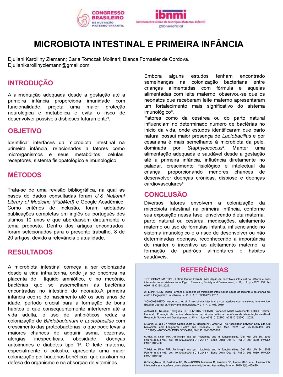 O Instituto Brasileiro de Nutrição Materno-Infantil (IBNMI) tem a satisfação de reconhecer os trabalhos científicos apresentados nesta edição do Congresso.