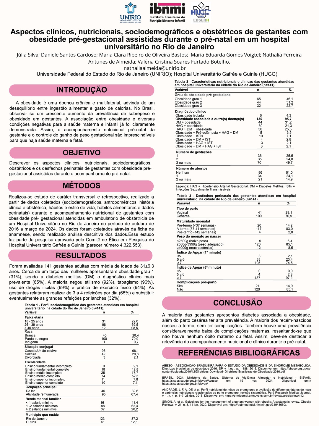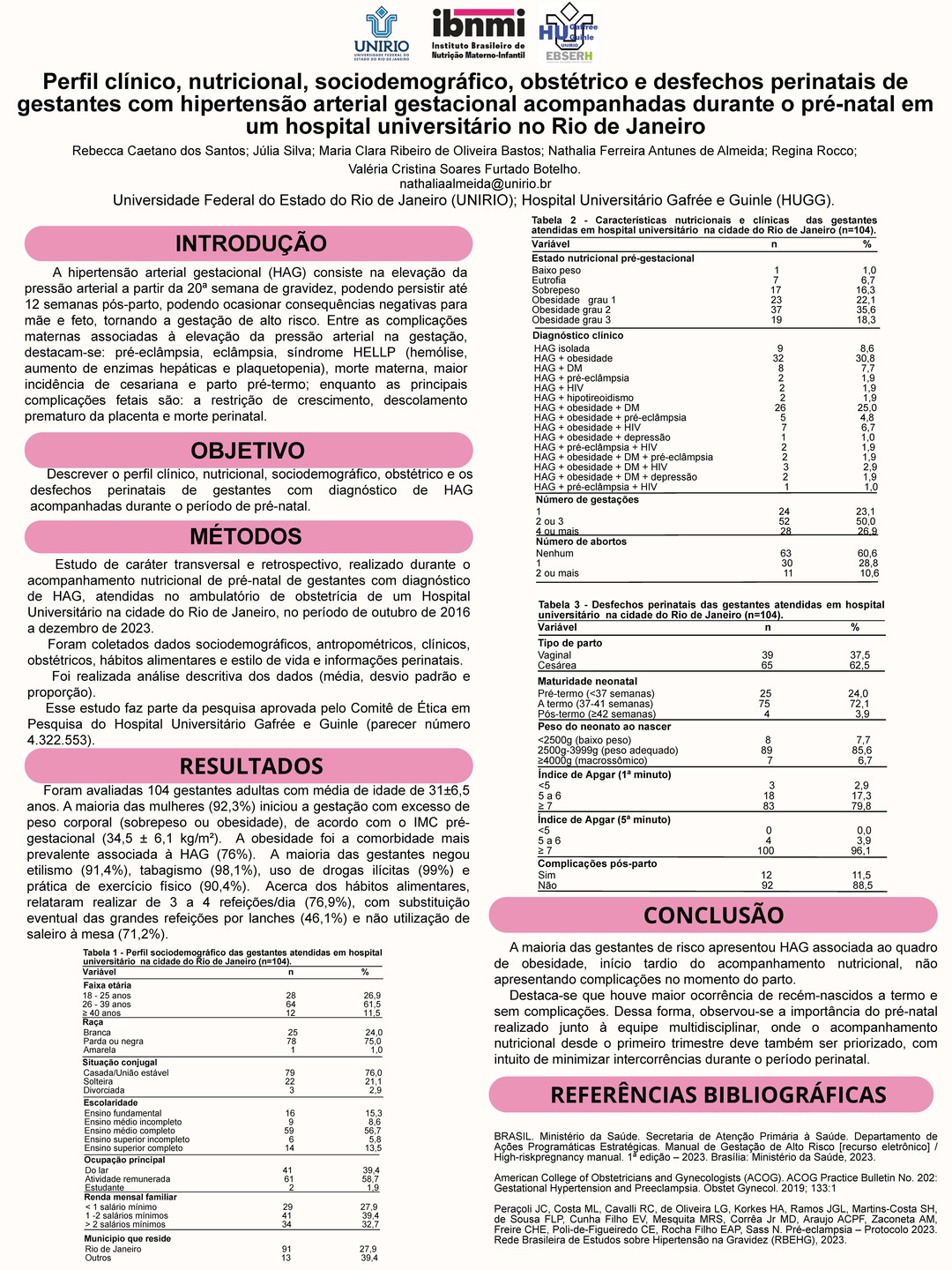 Cada trabalho aqui exposto representa dedicação, rigor metodológico e contribuição real para a prática clínica e para a saúde materno-infantil.